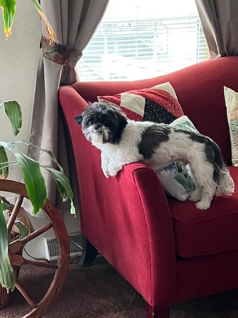 āMeet Mason. He is Shichon (Bichon Frise and Shih Tzu mix) He is a mommy's boy. He loves sitting on the couch and looking out the window. He loves to play with the grandkids but enjoys sleeping A LOT!ā