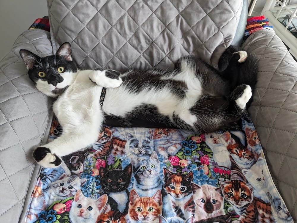 “We adopted ‘Oreo’ a stray cat from a FL RV campground we snowbird at. He is very entertaining.”