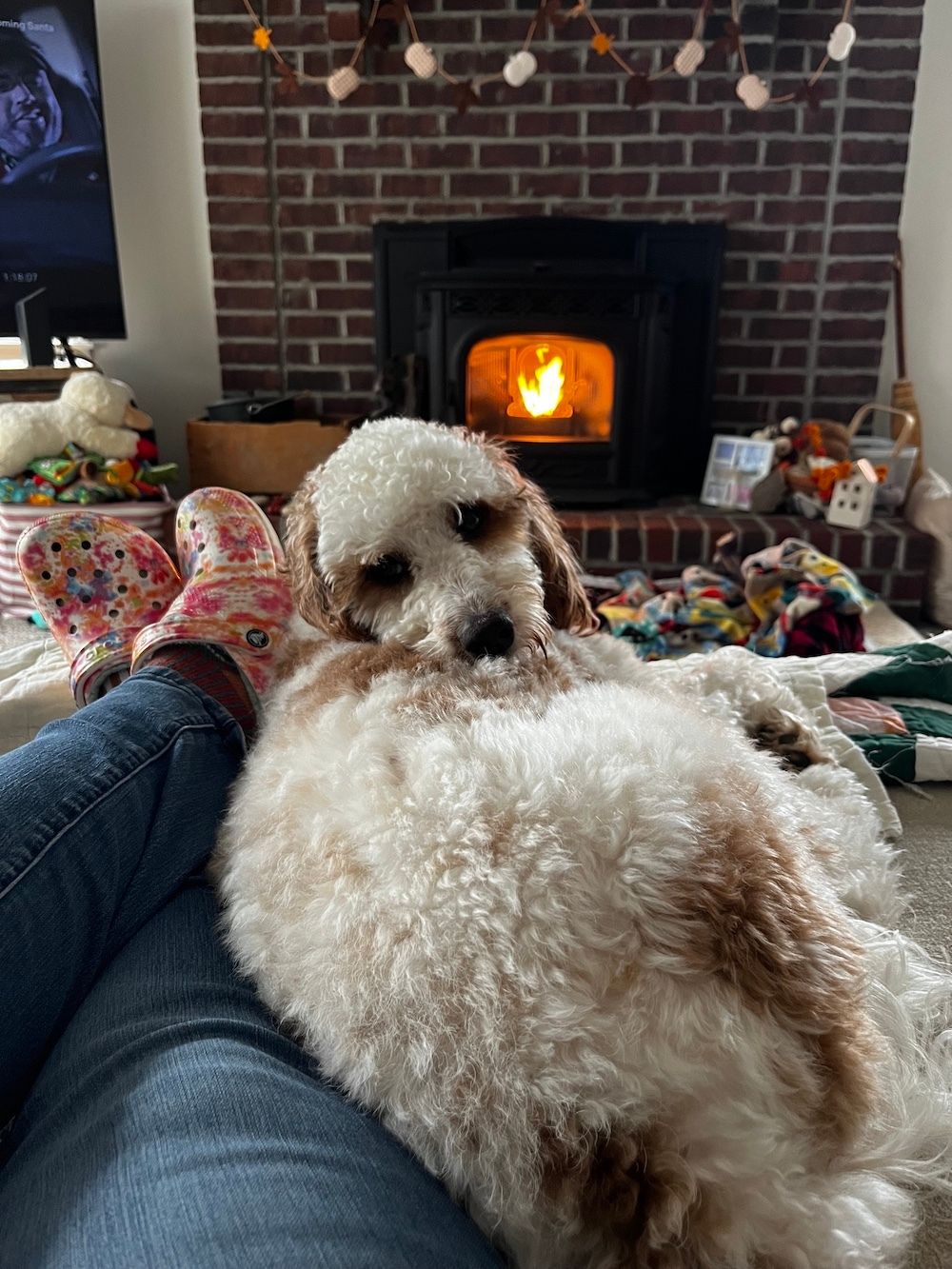 “Patches says Happy Thanksgiving! We rescued her from a puppy mill! She will be 2 in December and such a wonderful dog!!”