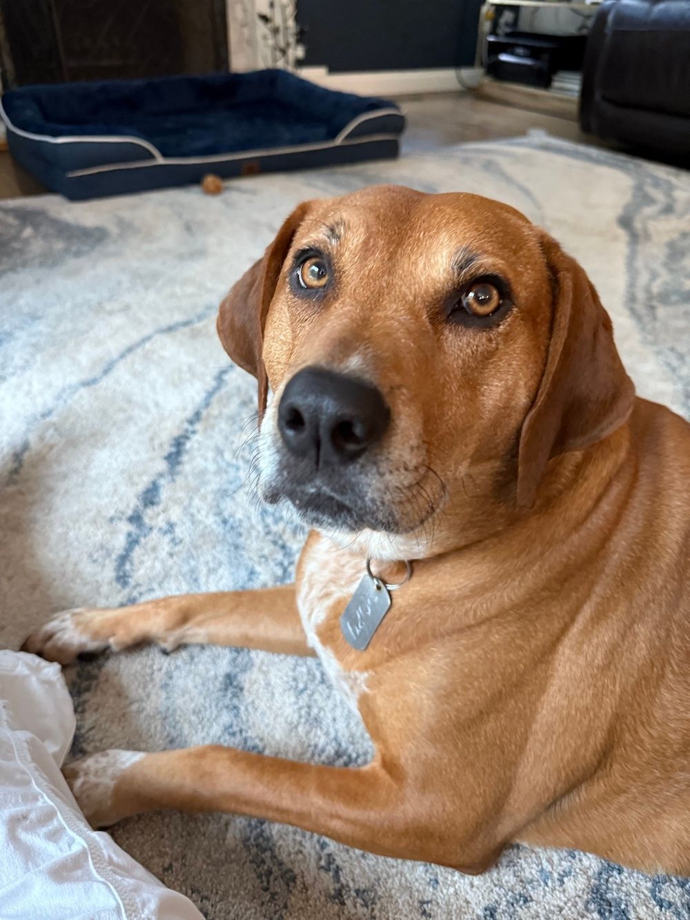 “Meet Roxy (5, Redbone Coonhound) - Roxy is a rescue from Georgia. This is the sweetest breed of dog we have ever had. She loves hiking anywhere anytime. She also loves her treats and basking in the sunshine. But will forgo these comforts to chase a squirrel.”